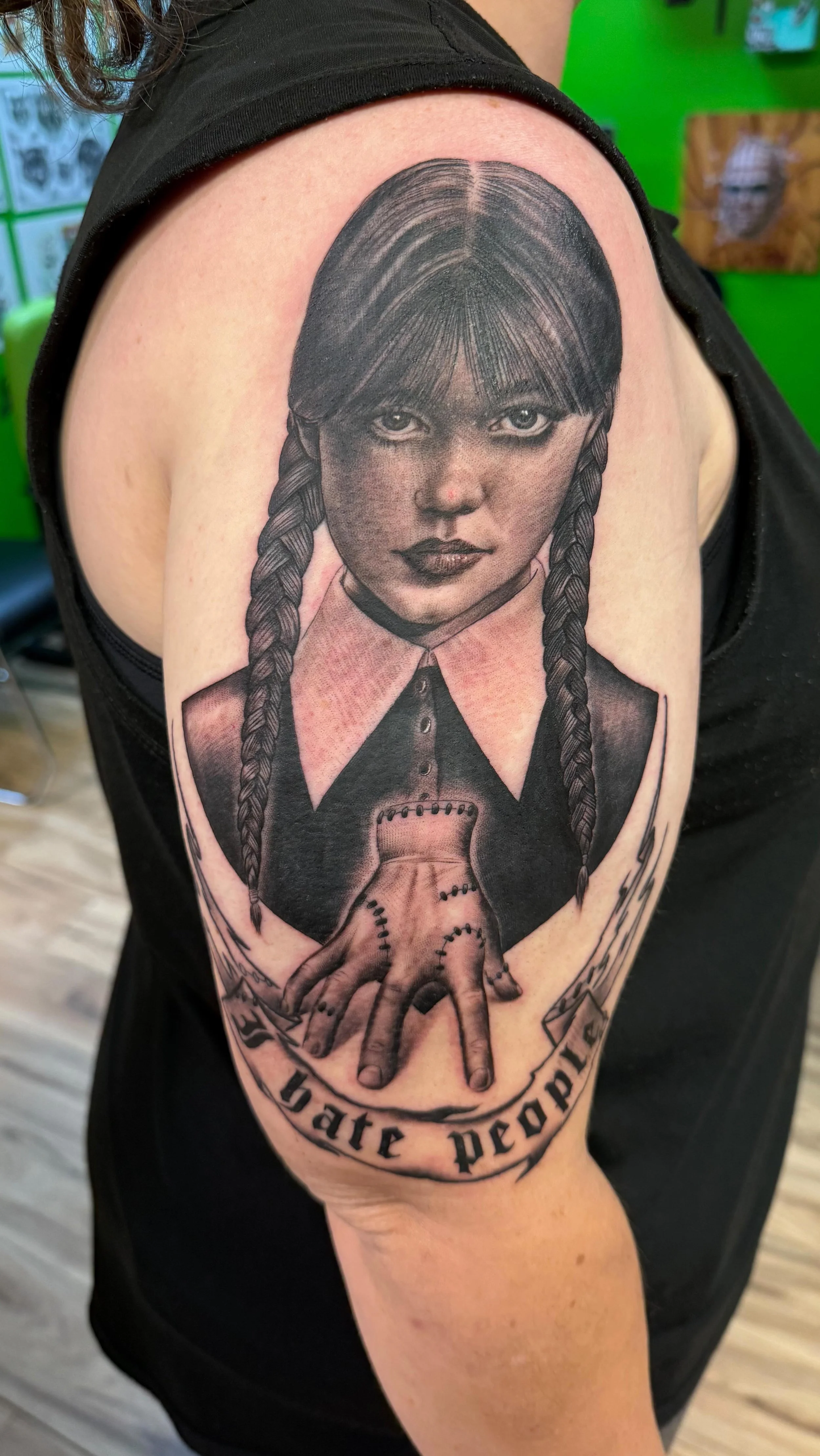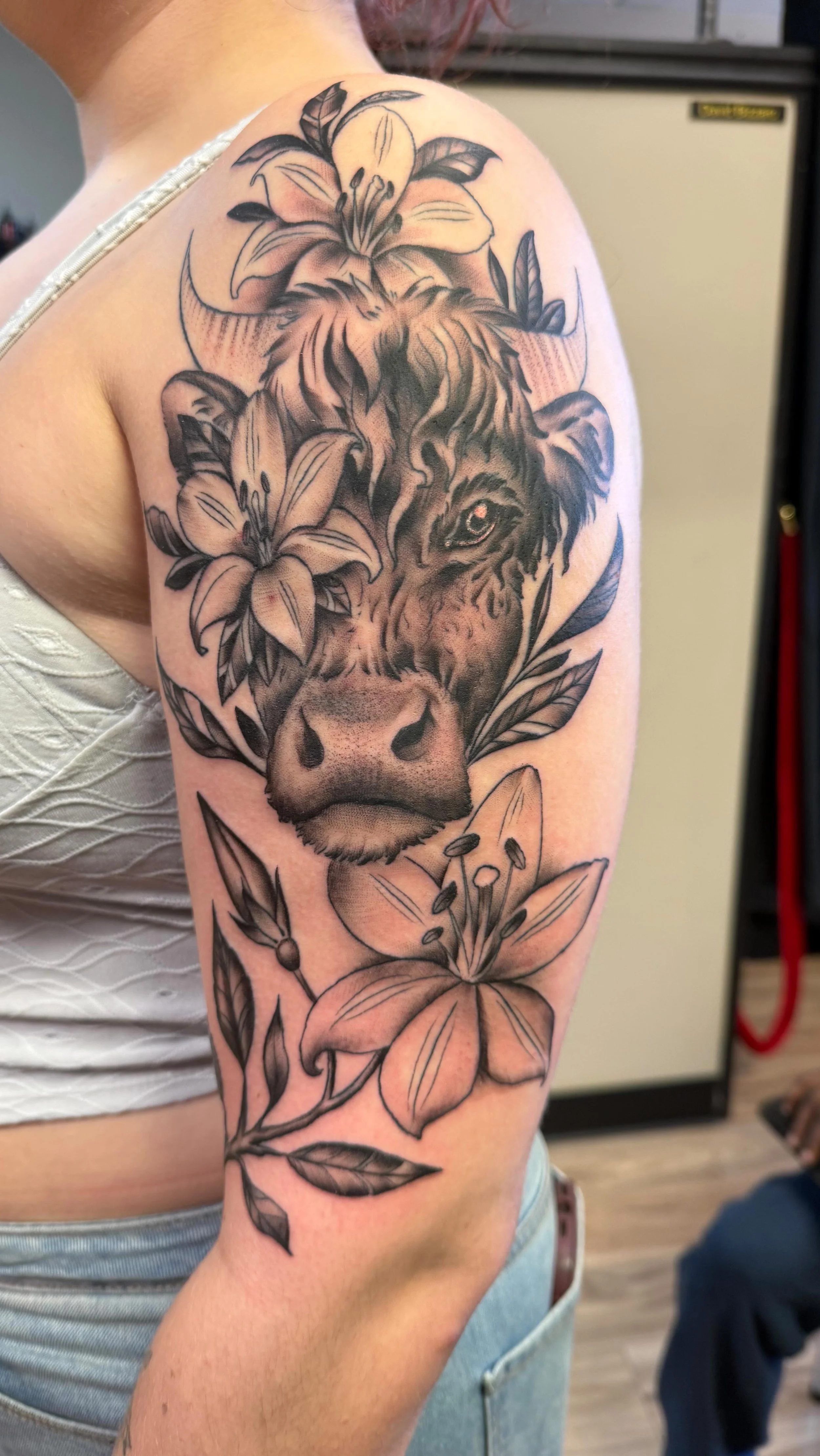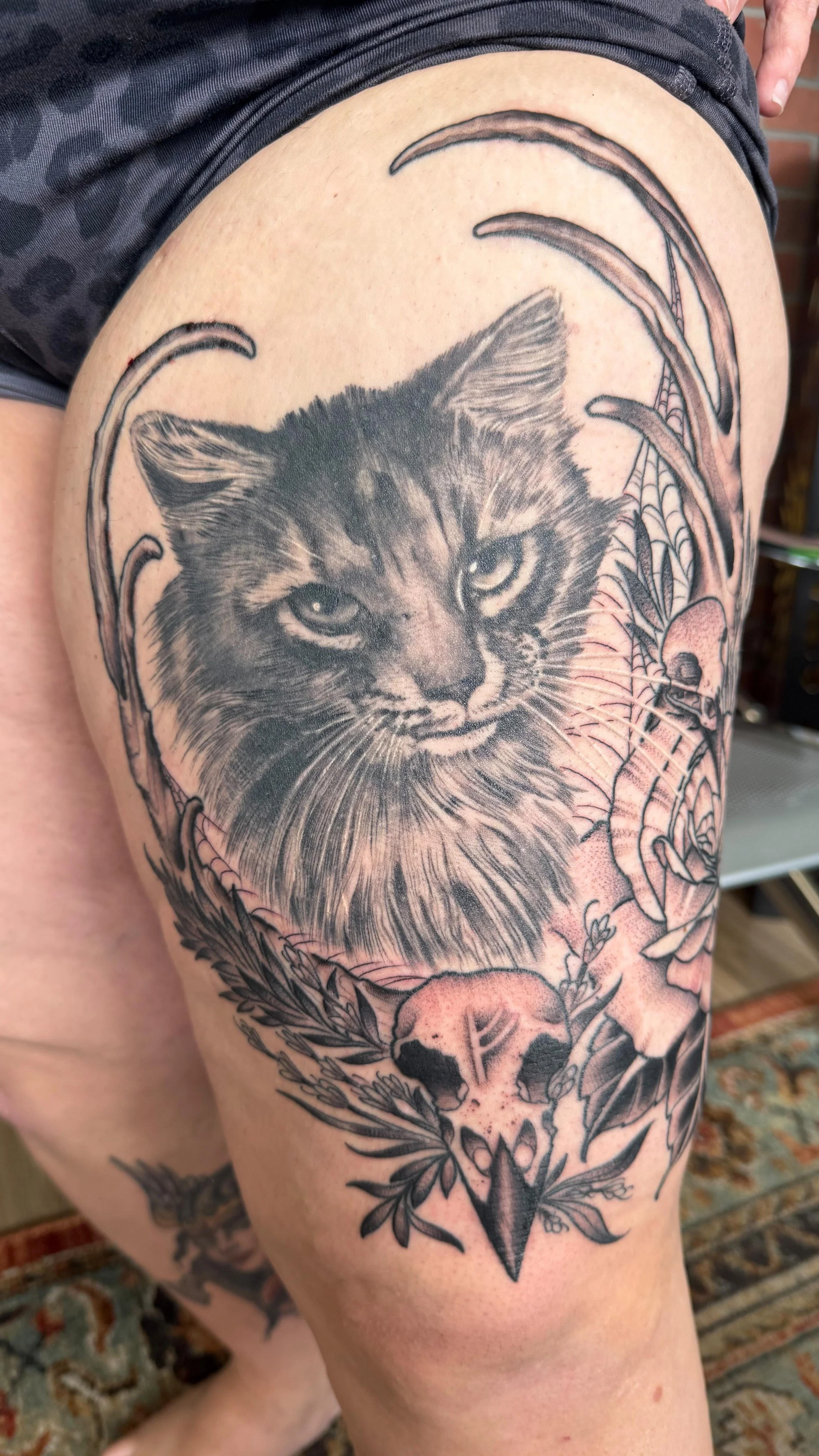 “Ashley Henson is hand downs the best artist I have ever worked with. She is kind, compassionate, and understanding of my crazy ideas, which I have many. Her artwork is superior, and I have never felt uncomfortable or unsatisfied with my tattoo experience. I really love this gal!!! <3”