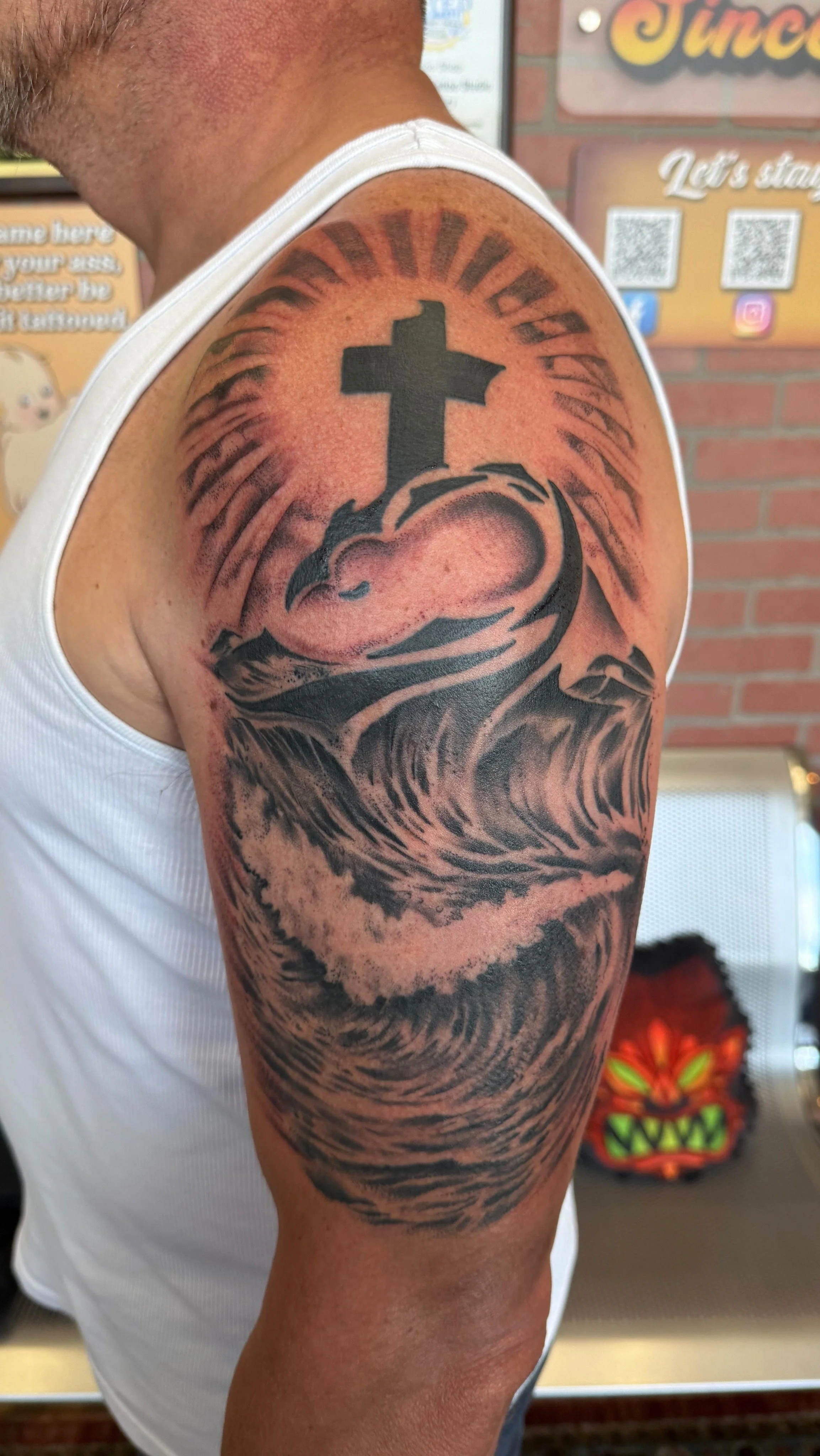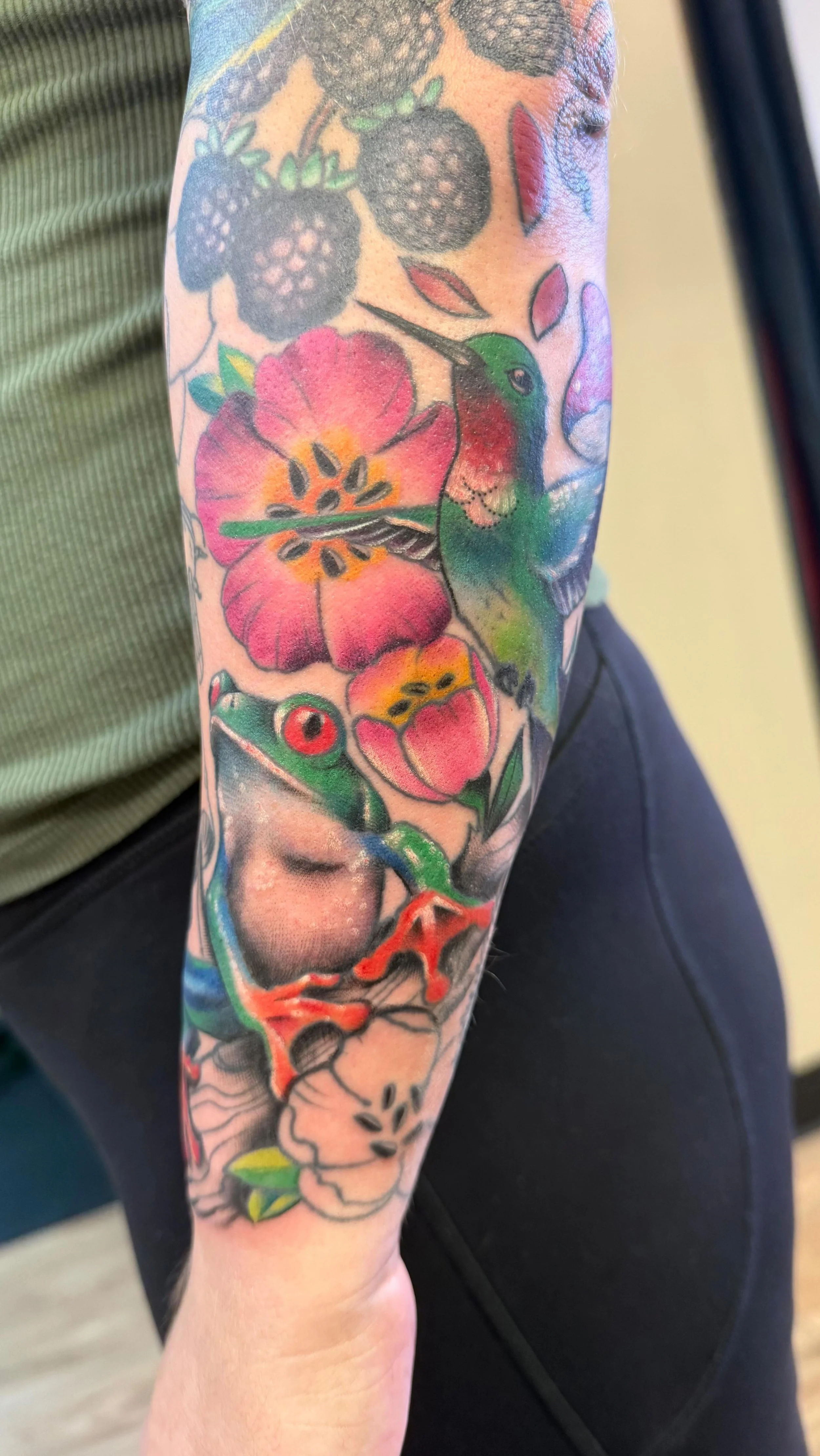 "Been working for a year and a half on my sleeve with Ashley Henson and could not recommend her or her work more. Still in progress but she took my ideas and has run with them and I couldn’t be more pleased! She’s not only ridiculously talented, but she makes the whole process easy and fun."