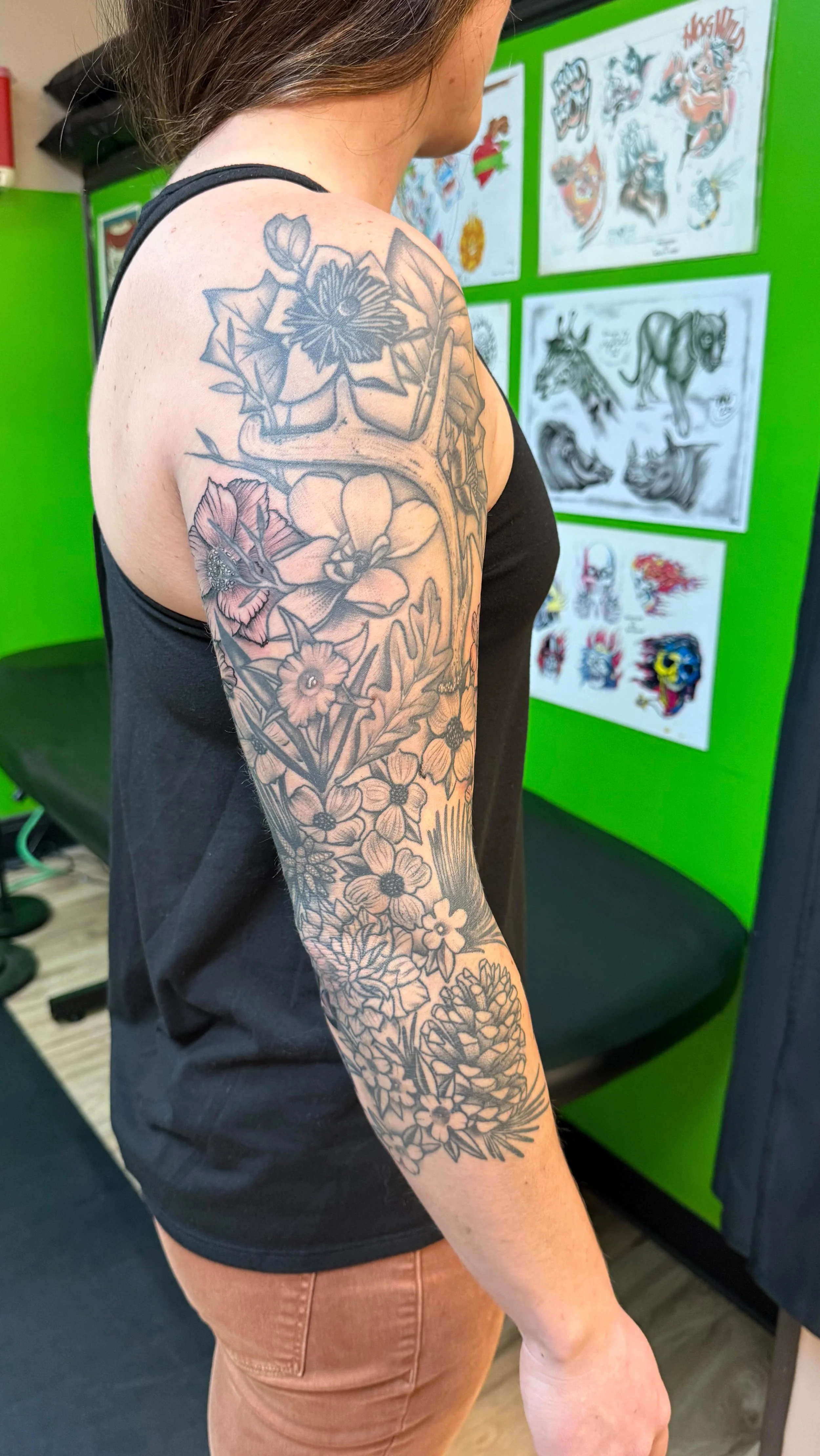 "Been working for a year and a half on my sleeve with Ashley Henson and could not recommend her or her work more. Still in progress but she took my ideas and has run with them and I couldn’t be more pleased! She’s not only ridiculously talented, but she makes the whole process easy and fun."